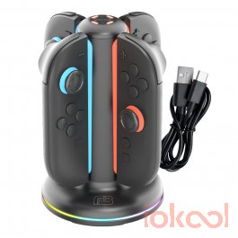• Base de carga cuádruple para cargar únicamente mandos Joy-Con™* 2 de Nintendo Switch™ 2. • Incorpora iluminación RGB LED en la base e indicadores LED del estado de carga en la parte superior. • Incluye cable de alimentación USB-A a USB-C de 0,8m. • Fácil colocación y uso (incluye guía rápida). • NO COMPATIBLE con mandos Joy-Con™ de Nintendo Switch™ (primer modelo) o Nintendo Switch™ OLED.