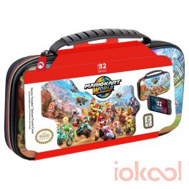 • Funda de Transporte Deluxe: guarda y protege el sistema Switch™, separador acolchado con soporte vertical y cierre de seguridad en velcro, asa de transporte y compartimiento inferior adaptado (incluye adaptador en espuma para los sistemas Switch™ y Switch™ OLED). • Bolsillos para 12 cartuchos de juego en el separador. • 2 fundas para microSD: para 2 microSD cada una. • Incluye gamuza suave de limpieza. • NO COMPATIBLE CON Nintendo Switch™ Lite.